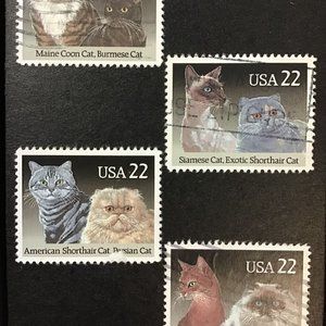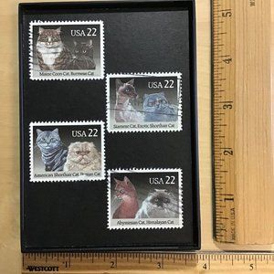Cats - Recycled Postage Stamp Framed Art 3.5"x5", kitten, Siamese, Shorthair, ma