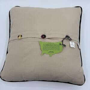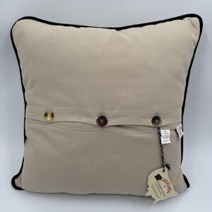 Reverse side is plain with black piping and multicolor button closure for the pillow insert