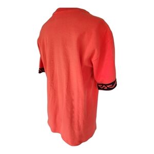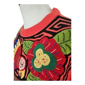Make a bold statement with this eye-catching embroidered top by Cattleya. Featuring a vivid parrot surrounded by tropical leaves and flowers, this vibrant coral-orange short sleeve shirt is a true celebration of color and craftsmanship. Perfect for festival wear, vacation looks, or adding flair to your everyday boho wardrobe.