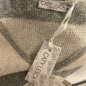 Caty Lesca Paris Gray Stripe Knit Sleeveless Top Women’s Size Small NWT