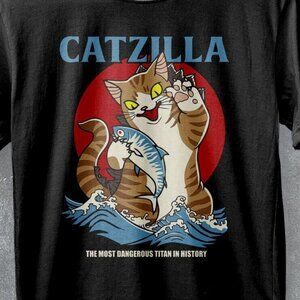 Catzilla Godzilla Japan Cat Lover Funny Parody Graphic Fan Art T-Shirt 165