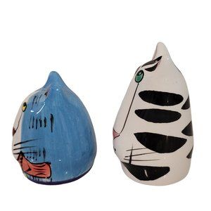Catzilla White & Blue Ceramic Salt & Pepper Shakers by Candace Reiter 2000