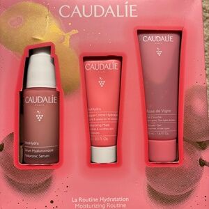 Caudalíe La Routine Hydration Set. Brand new in box (packaging box is just a little bent, no damage to products). Set includes VinoHydra serum and moisturizing mask, and Rose de Vigne shower gel.
