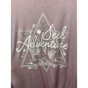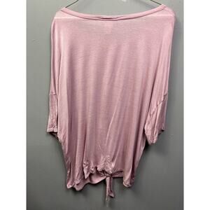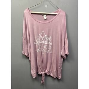 Caution To The Wind Graphic Blouse Womens Plus 3X Pink Short Sleeve Front Knot