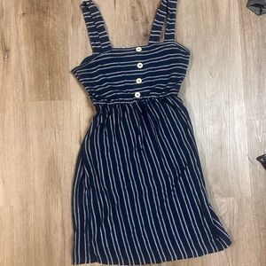 Caution To The Wind Navy Blue Striped Tank Dress Nautical Buttons