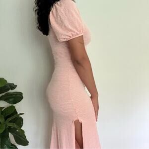 Caution To The Wind Peasant Sleeve Midi Summer Dress Small Soft Pink Bodycon