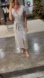 Chic gray midi dress with button-down front. Features a flattering V-neck and tie waist. Perfect for versatile styling.
