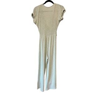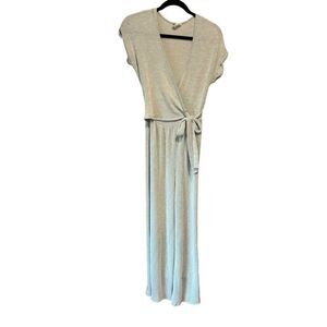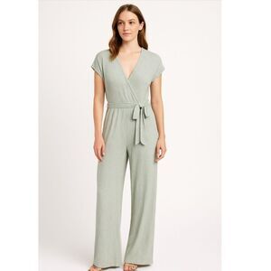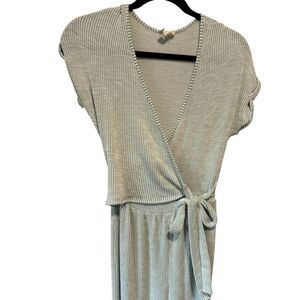 Caution To The Wind Striped V-Neck Wrap Front Knit Sage Green Jumpsuit