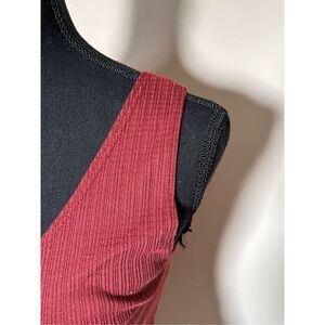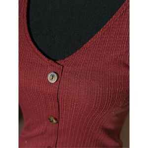 Caution To The Wind Tank Top Maroon Sleeveless V Neck Ribbed Buttons Size Medium