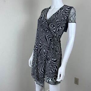 Caution To The Wind Women Size S Black Faux Wrap Mini NEW Dress Pullover Retro