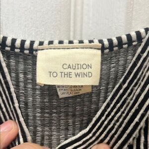 Caution To The Wind Womens Large Striped Black and White Decorative Button Dress