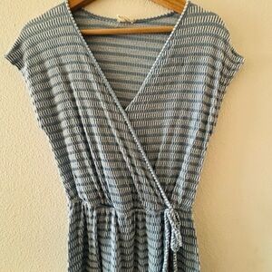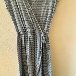 This casual maxi dress from Caution To The Wind features a stylish wrap design with a flattering V-neckline. The dress is adorned in a chic gray color scheme and has cap sleeves for a comfortable fit. Its A-line silhouette and elasticized waist offer a graceful and relaxed look, perfect for everyday wear.