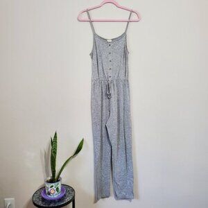 Caution To the Wind Gray Heathered Stripped Comfy Casual Jumpsuit Size Medium