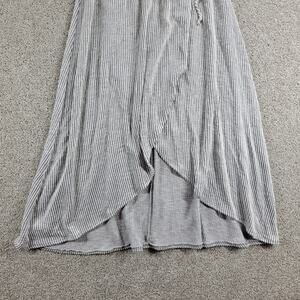Caution to the Wind Faux Wrap Dress Womens M Gray Stripes Sleeveless Stretch
