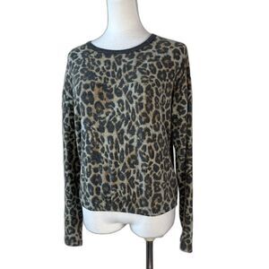 Caution to the Wind Leopard Fuzzy Animal Print Cropped Sweater Size MEDIUM