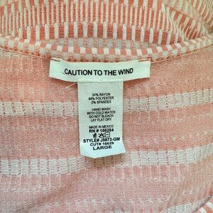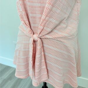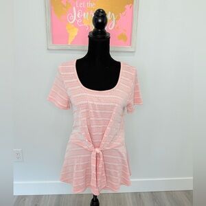 Caution to the Wind Pink White Short Sleeve Front Tie Top (L)