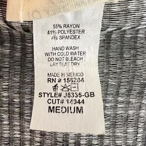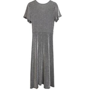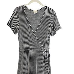 Caution to the Wind Women's Midi Dress Size M Black White Stripe Faux Wrap Ribbed Knit