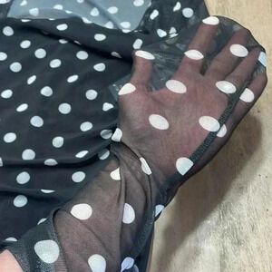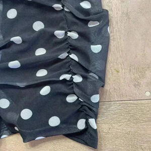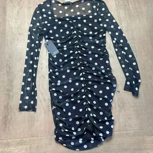 Caution to the Wind dress, size Medium. NWT. Black with polka dots, sheer fabric, scrunched sides and back. Adorable!!