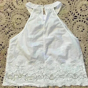 Caution to the Wind white lace halter tank. Size medium. In excellent pre loved condition. Measures 18” across the chest & 21” long.