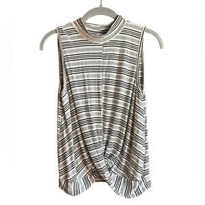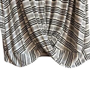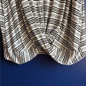 This stylish tank top from Caution To The Wind features a chic black and white color scheme with a tie front detail. The sleeveless design and mandarin collar add a modern touch, making it a versatile addition to any wardrobe.