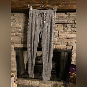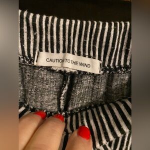 Elastic tie waist - black & white stripe - elastic band jogger bottom .no size tag - but will fit small or smaller medium. Good condition