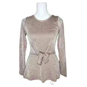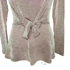 Caution to the wind women's striped blouse size XS. Tie on front. Stretchy! Dark pink. Care tag and size tag has been removed. According to measurements this top is an XS. Measurements are approximate and taken flat. Chest 14" Length 23"