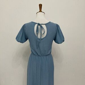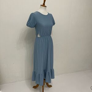 Caution to the wind pretty blue cutout puff sleeve tiered maxi midi dress medium