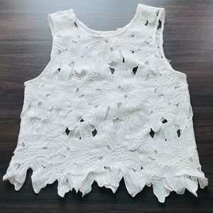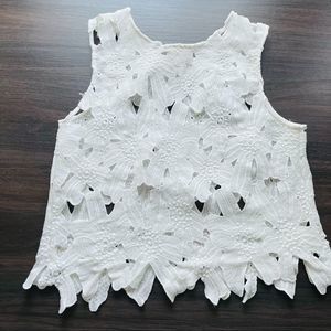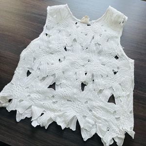 Caution the the Wind White Appliqué Crop Top