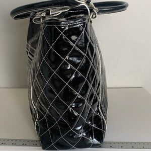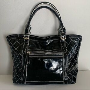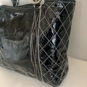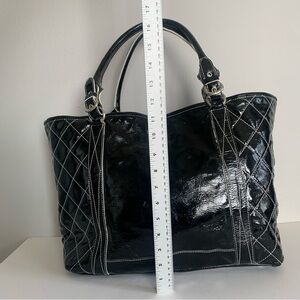 Cavalcanti Genuine Black Patent Leather Shoulder Bag Quilt Made In Italy Large