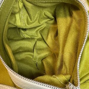 Interior has a side zipper compartment in a middle zipper compartment, small slot compartment
