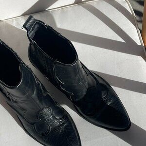 Vegan leather boot with western details. Barely worn but incredibly comfortable!