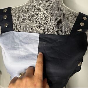 Stunning colorblock dress by cavalier. Features drop waist, chic color block design and contrasting buttons. Great preowned condition with only slight discoloration on front as shown which will likely resolve with appropriate treatment. Lying flat armpit to armpit approx 15” across and top of shoulder to bottom hem approx 43”. All measurements are approximate