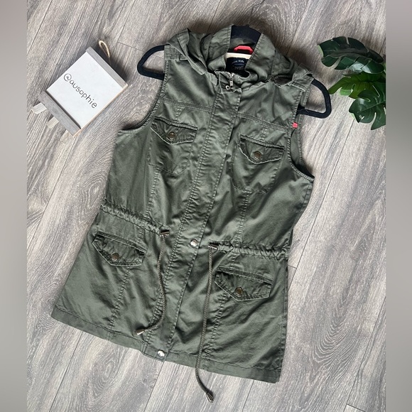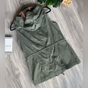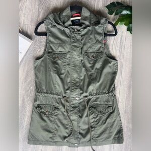 Cavalini Army Green Hooded Cotton Utility Vest w Toggle Drawstring Waist Sz PM