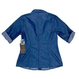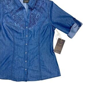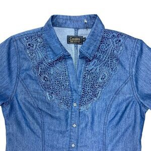 - Description: Cavalini Button Front Denim Shirt S Blue Lace Embellished Classic Smart Casual