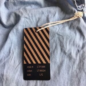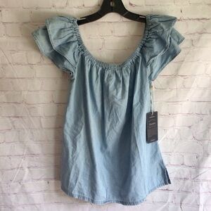 Cavalini Denim Collection light-wash blue blouse with ruffled sleeves. This top could also be worn off shoulder. Elastic neckline. Made of 100% cotton. New with tag. Smoke free home.