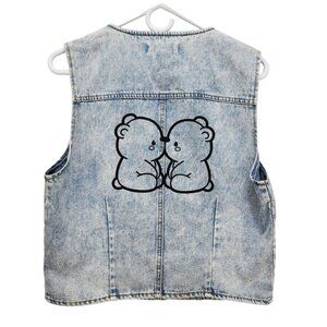 Cavalini Denim Vest With Costume Bear Size Small