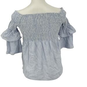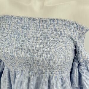 Cavalini Smocked Shirred Top SZ L Blue Women's Off the Shoulder Coastal Resort