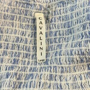 Cavalini Smocked Shirred Tops SZ L Blue Women's Elegant Feminine Flirty Playful Coastal Resort