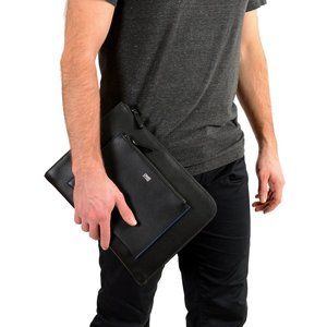 CAVALLI CLASS MEN'S BLACK TEXTURED LEATHER DOCUMENT PORTFOLIO CASE BAG