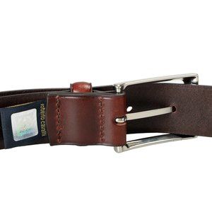 This is authentic Cavalli Class Men's Brown 100% Leather Buckle Decorated Belt