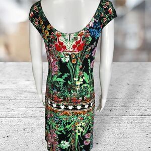 Cavalli Class Graphic Car Print Cap Sleeve Dress