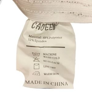 Size in photos is approximate. It’s stretchy material with elastic and will stretch a bit if needed.
