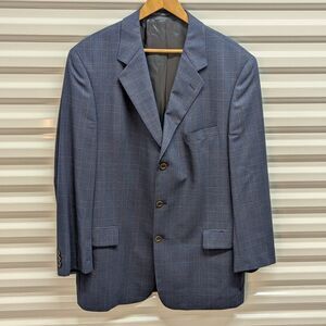 Cavelli Size 44L Blue Plaid 100% Wool Blazer - Christopher's Couture