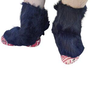 The show covers are homemade. They are made from fake black fur. They are very adjustable since they are just a chunk of fabric closed with safety pins.