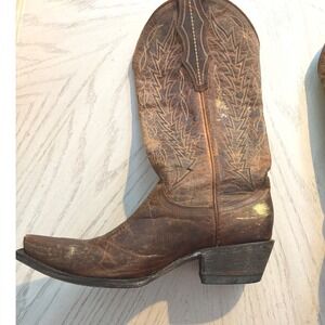 Cavenders Western Boots Brown Leather Stitch with Gold Brush Strokes Size 6.5 B