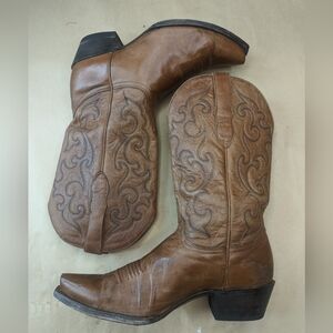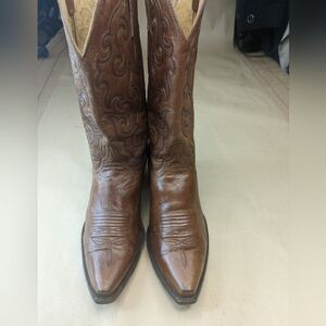 Cavenders Women's 9.5 B Tan Leather Snip Toe Western Cowboy Western Rodeo Boots.