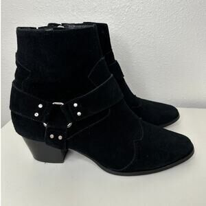 Caverley Black Suede Western Heeled Silver Buckle Zip Ankle Boot Booties 39 / 8