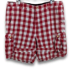 Cavi Red White Gingham Check Cargo Shorts Size 42 Classic Fit Summer Style