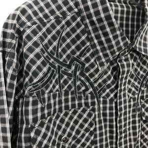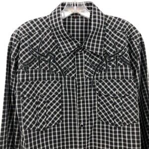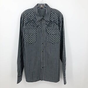 Caviar Dremes Italian Button Front Shirt Men's Size XL Black Check Embroidered