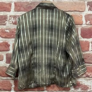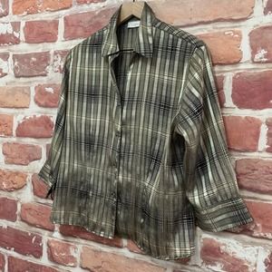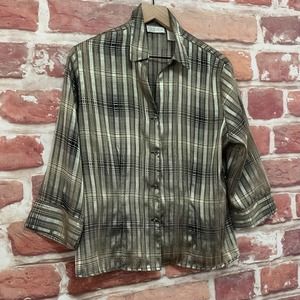 Caviar Top Women's Large Gold Metallic Plaid Abstract Button Down Blouse